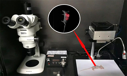 檢測標記物在帶腫瘤小鼠的各器官和腫瘤部位的分部情況,封閉的暗室設(shè)計,紅外和明場的觀測可隨時轉(zhuǎn)換,結(jié)合軟件的偽彩處理,實現(xiàn)腫瘤定位